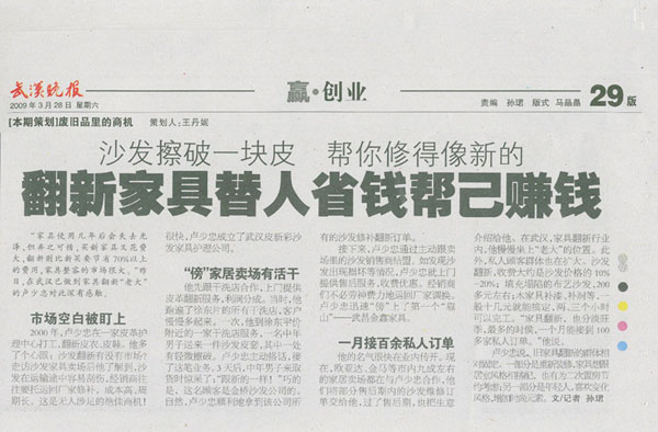 現(xiàn)在位置:首頁>公司新闻>武漢晚報——翻新家具 替人省錢 為己賺錢