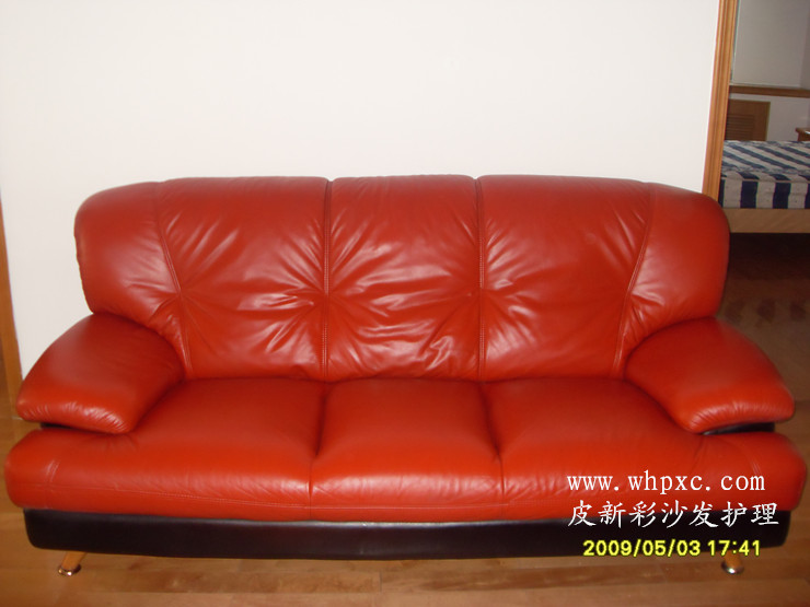 紅色沙發(fā)最容易出現(xiàn)變色,也最不耐臟,這套沙發(fā)是1+2+3頭層牛皮,沙發(fā)海綿和框架都還行用了5年還沒(méi)有變形,是金馬左右的沙發(fā),價(jià)值1萬(wàn)左右我們給它做了清洗上色翻新收費(fèi)1000元,效果很好,翻新熱線13554633331