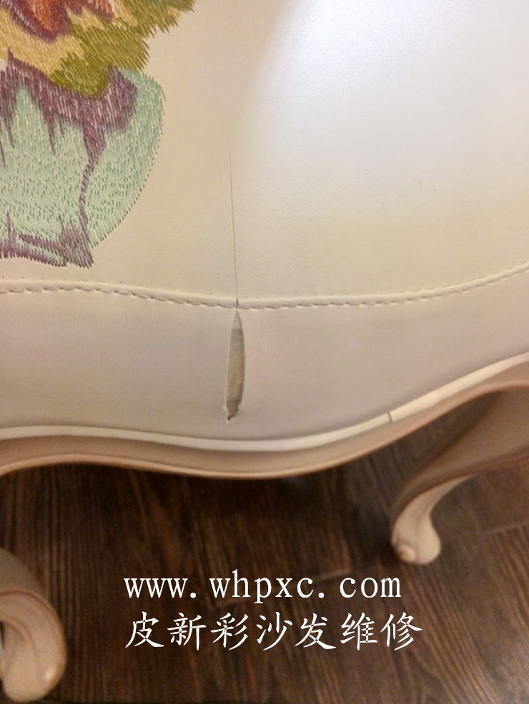 沙發(fā)修補,仿皮印花沙發(fā),開包時給刀片劃穿了,傷口長20厘米,不修又配不到帶花的皮子,一般師傅是修不好的,我們用專用膠水粘好后,再用補傷膏填平、打磨、上色,修好了就看不到痕跡,皮新彩沙發(fā)維修熱線:13995508166