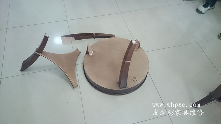 家具維修補(bǔ)漆,這個(gè)家具已經(jīng)摔碎了,我們把它用粘木膠粘后以后再打丁,補(bǔ)好了看不出來,這種家具維修成本太高,沒有維修價(jià)值。皮新彩家具維修電話:13995508166