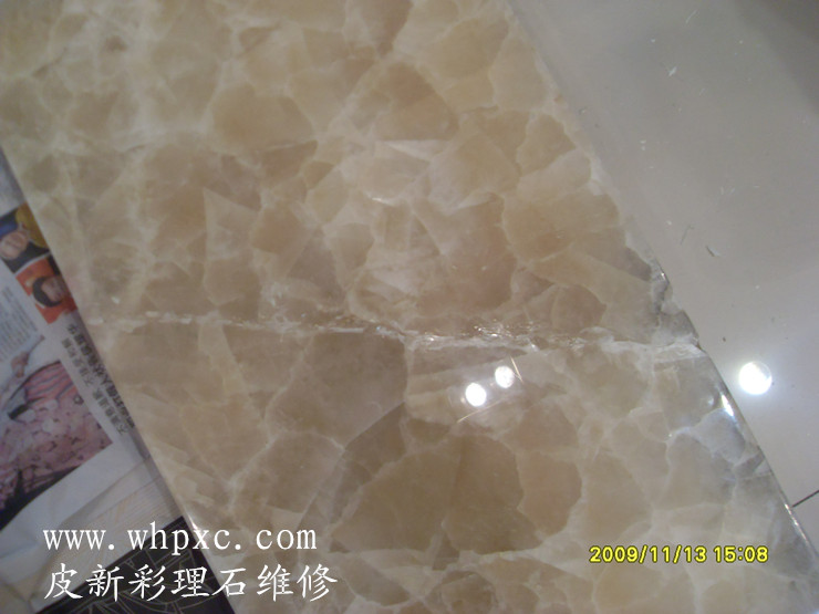 大理石維修,大理石斷裂,用理石漆粘接起來,再打磨拋光就行,為了增加強度可以在背面粘一塊石頭,理石維修后硬度和平整度沒有問題,裂痕還看得見,皮新彩大理石維修13995508166
