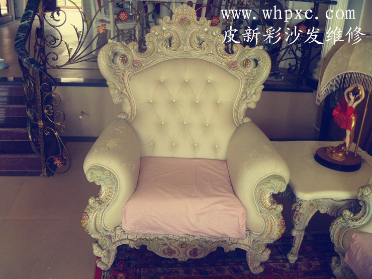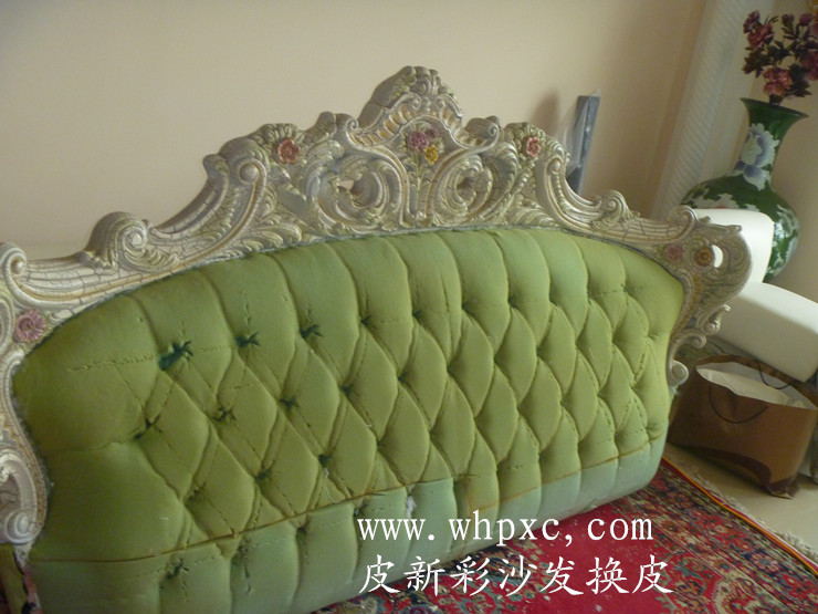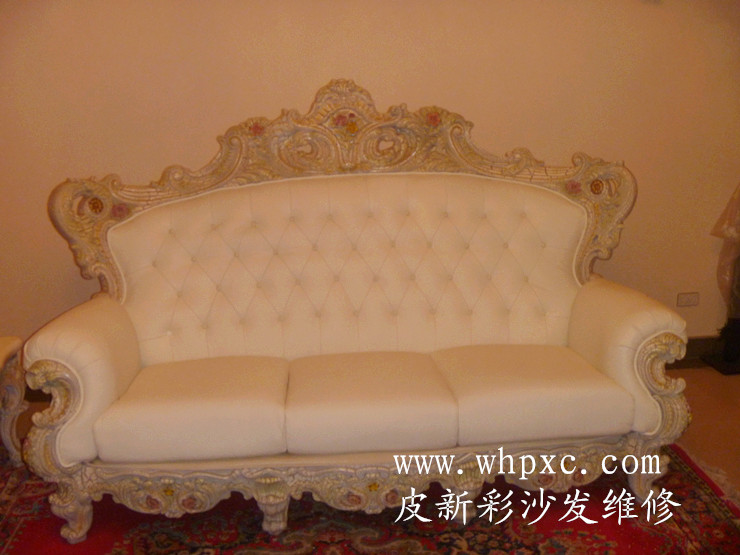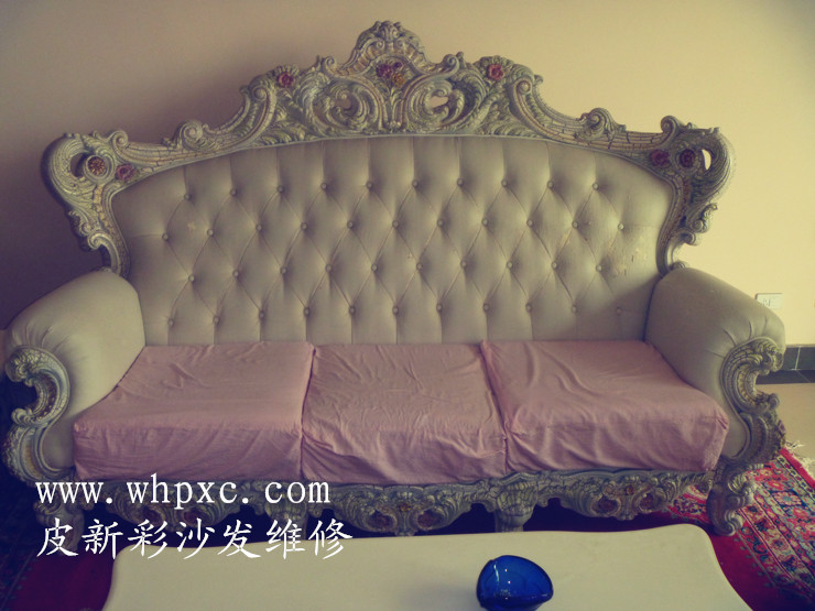 歐式雕花彩色裂紋漆非常漂亮,沙發(fā)買時花了3萬左右,只是真皮質(zhì)量太差,是貼膜二層皮幾年后就出現(xiàn)裂面脫皮,我們皮新彩給她全部換成頭層牛皮又像新的一樣。歐式沙發(fā)做工復(fù)雜用皮量大,全套換頭層真皮1萬元左右,皮新彩沙發(fā)翻新?lián)Q皮熱線:13554633331