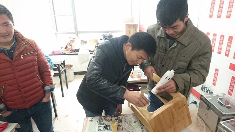認識盧總是2年前,那時候我在尊藝學(xué)補漆,學(xué)成之后在家里練了兩年一直到我認為掌握了全部技術(shù), 才決定到皮新彩學(xué)習(xí)系統(tǒng)的皮具維修,因為我有很好的基礎(chǔ),師兄們封我為“學(xué)霸”在皮新彩還是學(xué)了不少東西,盧總帶我們?nèi)プ隽x工教我們怎樣利用事件營銷和社會化營銷來宣傳自己,打開了我們的視野,在木器維修方面皮新彩的水性漆維修方法和材料,給了我很大的啟發(fā),皮新彩2016年的學(xué)員建了一個微信群,學(xué)員里面有老手也有高手有一批師兄弟同行相互交流再也不會孤單了!