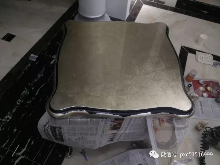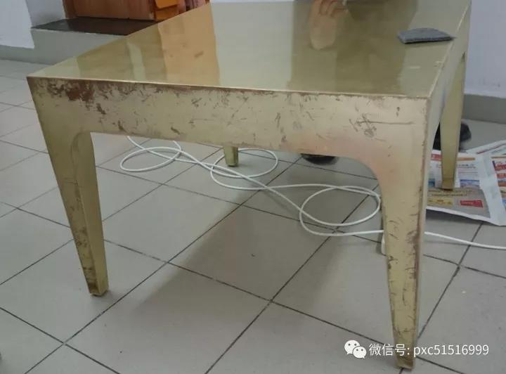 下圖小面積脫漆起皮用水性面漆調(diào)金銀粉維修更簡單,水性面漆上完色后要在表面噴自噴面漆封固