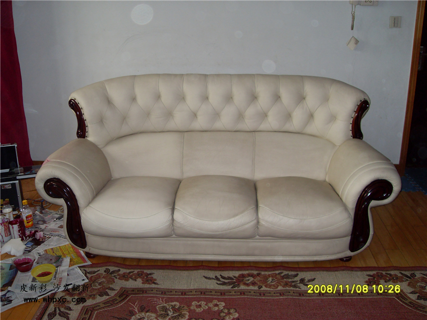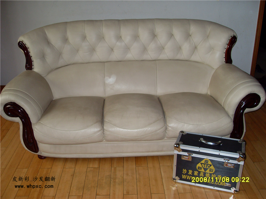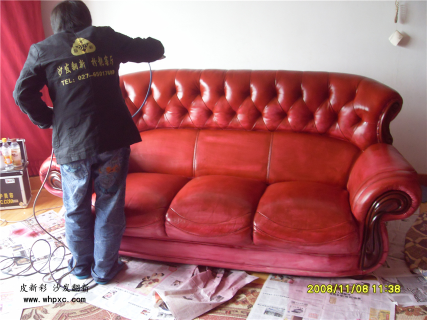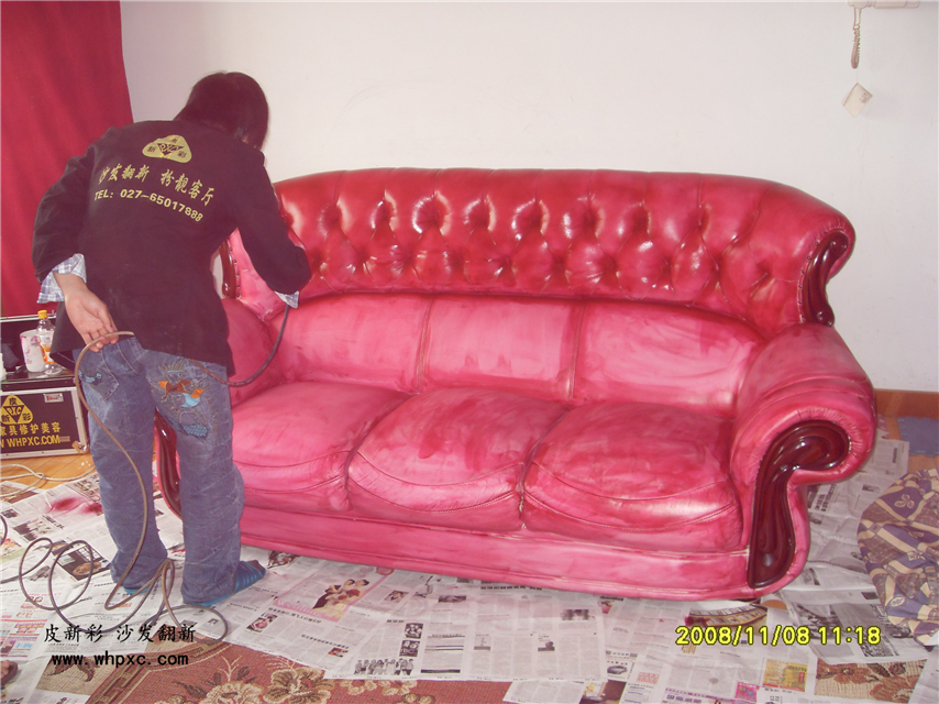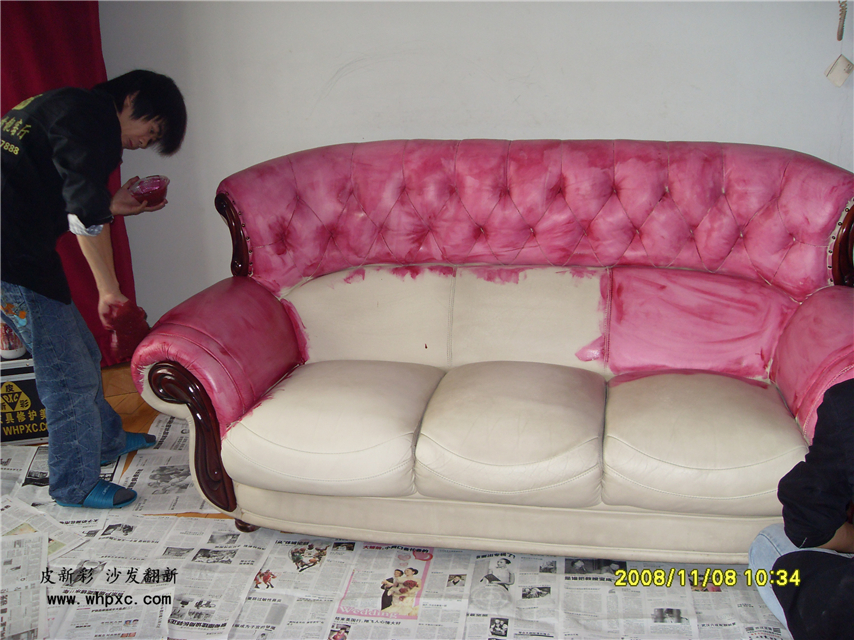 白沙發(fā)改色,白沙發(fā)客戶嫌容易臟,想改成紅色,改色的工作量相當于翻新3套沙發(fā),得整整一天時間,收費在1200元左右,皮新彩用專用的強粘成膜劑給他進行改色,改色對皮子要求較高,仿皮無改色價值,二層皮不能改色,真皮太軟不能改色,太硬不能改色,只能改不軟不硬的頭層牛皮。