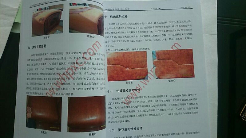 皮面有兩種以上顏色叫花紋皮,不吸水的花紋皮清洗跟光面皮洗法一樣,只是花紋皮是二次上色才做出花紋的,皮面固色層磨掉了面上的一層顏色就容易脫色,清洗時要注意不要用力過大把表層顏色洗脫洗成單色的。吸水的花紋皮清洗方法跟磨砂皮一樣。