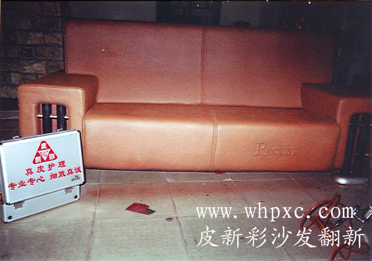這個(gè)沙發(fā)放在車庫(kù)里面已經(jīng)嚴(yán)重發(fā)霉,在翻新之前我們要把沙發(fā)海綿拆下來(lái)爆嗮,然后把皮面清洗干凈,再用磨砂皮成膜劑調(diào)色漿進(jìn)行上色,每上兩次色都要打磨一遍做一次固色處理,直到整個(gè)皮面顏色一致為止。這個(gè)沙發(fā)翻新后手感很差。皮新彩翻新熱線13554633331