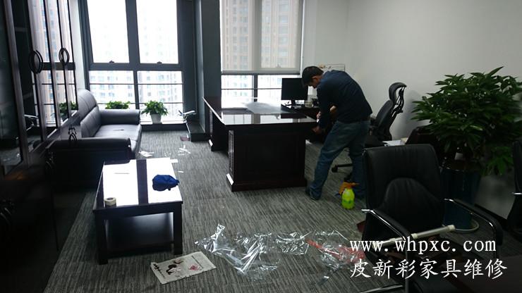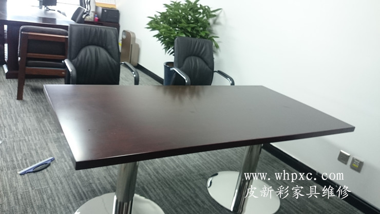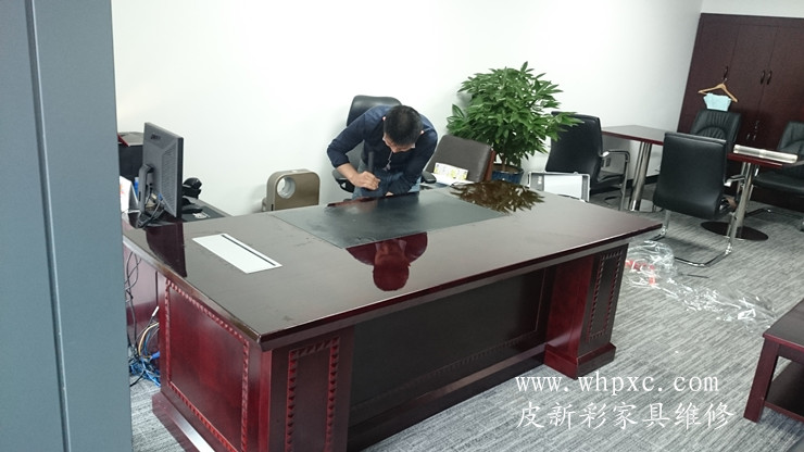 長(zhǎng)江水利委員會(huì)家具貼膜維修工程,嶄新的辦公家具漆膜太薄,水杯一燙漆面就發(fā)白,做衛(wèi)生水沒(méi)有擦干凈也發(fā)白,我們給出兩種方案,貼膜和噴漆,還是貼膜效果好又環(huán)保,皮新彩辦公家具維修13995508166