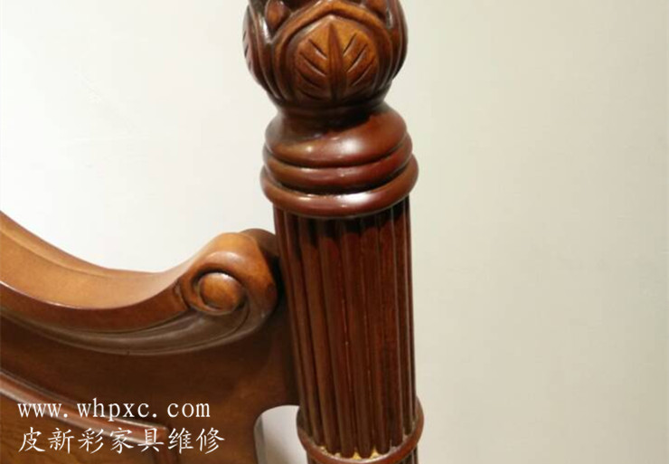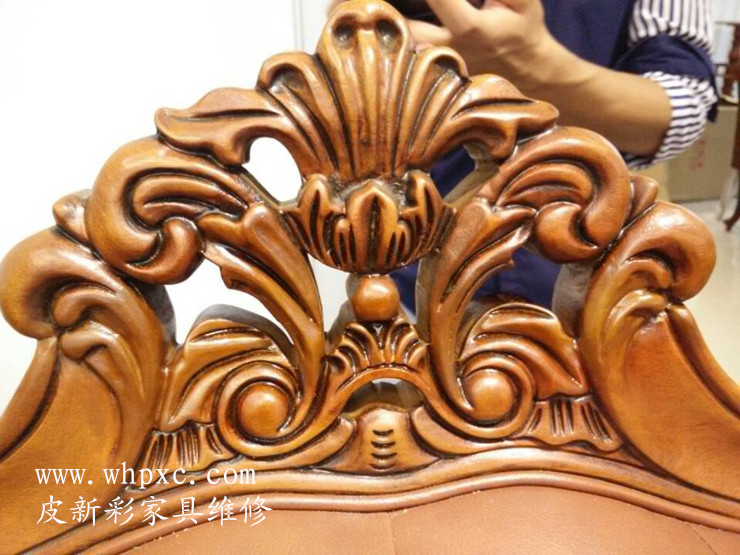 歐式雕花炸裂,用鋸末加膠水填充造型再用雕刻刀刻出紋路,上色做舊,維修好了以后,強度和外觀幾乎一樣,花紋越復(fù)雜打磨越困難,皮新彩家具維修熱線:13995508166