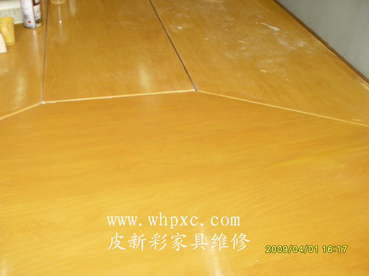 貼紙家具維修,貼紙家具容易起泡維修把起泡的鏟掉,不要擴(kuò)大面積,再刮灰打磨、打膠上色,做紋、再做面漆就行了,皮新彩家具維修熱線13995508166