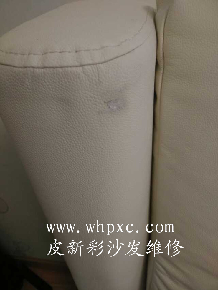 沙發(fā)破洞維修,沙發(fā)破洞連里面的海綿都沒有了,修補是先把海綿填補好再拼接皮子,最后再上色做紋套花,皮新彩沙發(fā)維修熱線13995508166