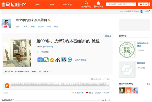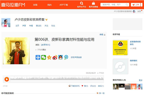 武漢皮新彩,做家具維修行業(yè)的傳道者。國內(nèi)家具維修行業(yè)第一電臺(tái),讓你了解最全面的家具維修理論和最有效的營銷方法。幫你制定最適合的經(jīng)營模式。