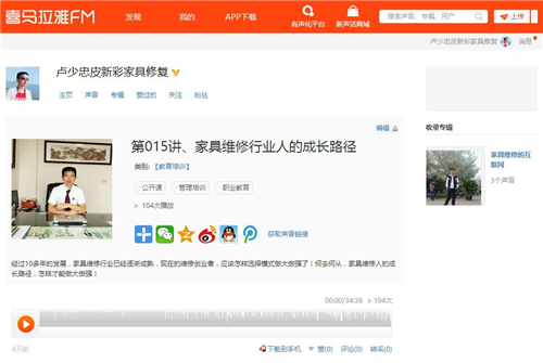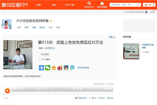 武漢皮新彩,做家具維修行業(yè)的傳道者。國內(nèi)家具維修行業(yè)第一電臺(tái),讓你了解最全面的家具維修理論和最有效的營銷方法。幫你制定最適合的經(jīng)營模式。