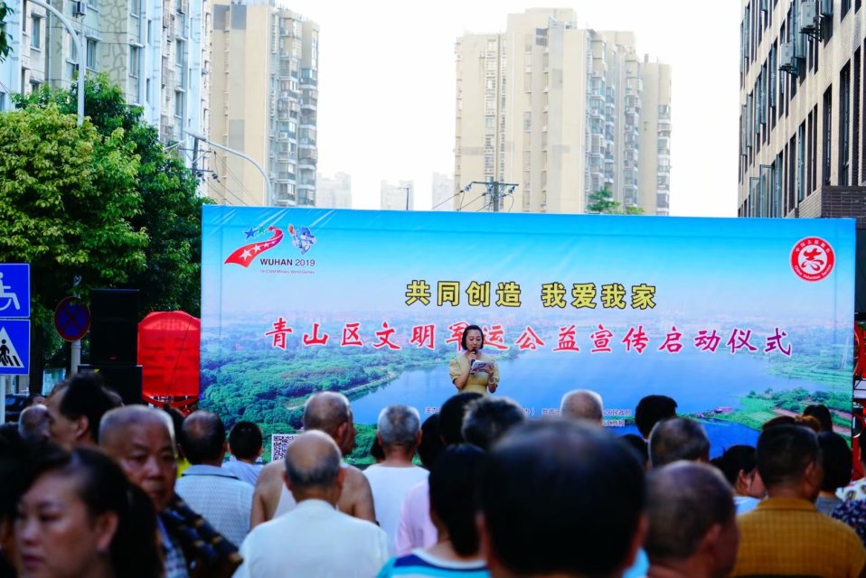 天氣熱義工活動改成傍晚了,為2019年武漢主辦世界軍運會宣傳造勢,到時會有一百個國家的上萬名運軍人動員參加比賽,建設文明城市,大江大湖大武漢,必將在明年驚艷世界!