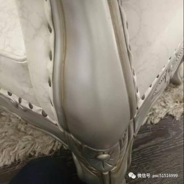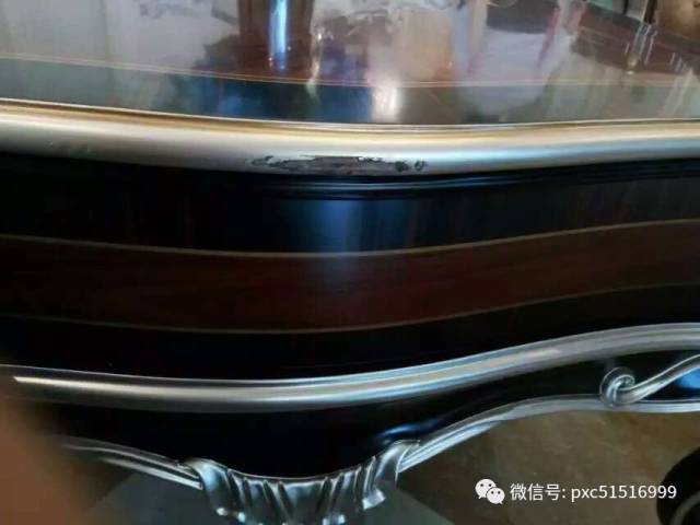下圖小面積脫漆起皮用水性面漆調(diào)金銀粉維修更簡單,水性面漆上完色后要在表面噴自噴面漆封固